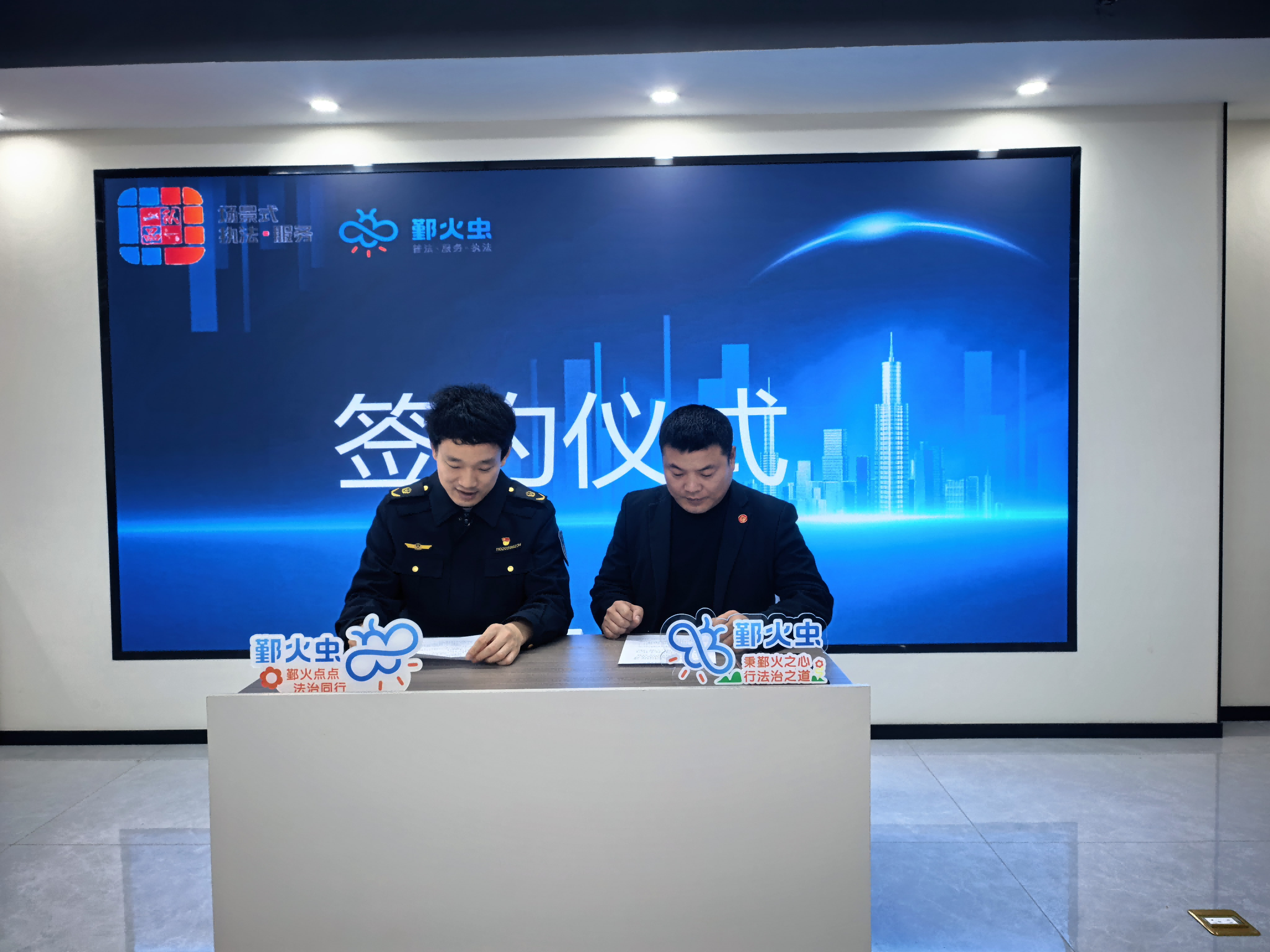 下應(yīng)中隊(duì)與物業(yè)經(jīng)理代表進(jìn)行簽約