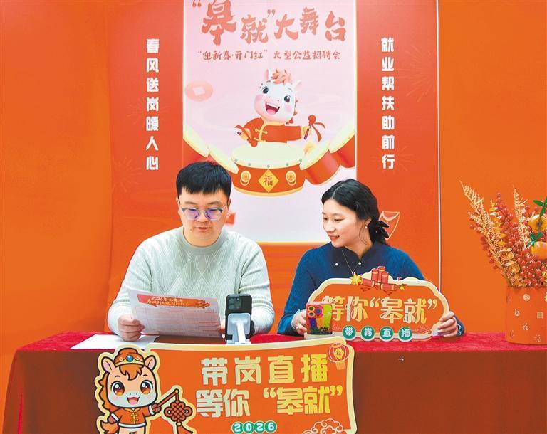 2月27日,江蘇省如皋市2026年“春風(fēng)行動(dòng)”高校畢業(yè)生專場招聘會(huì),工作人員通過社交平臺(tái)直播招聘信息。吳樹建攝(中經(jīng)視覺)