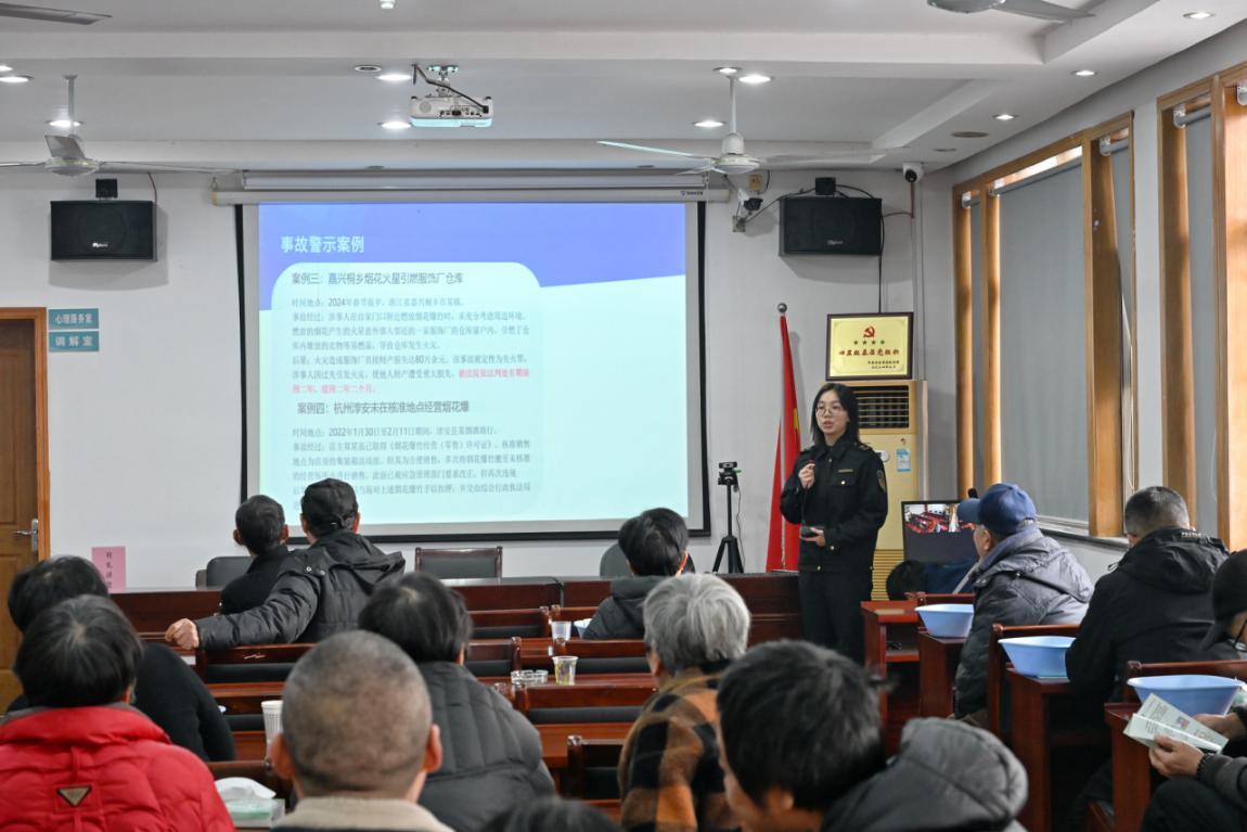 執(zhí)法人員在岐西村宣傳煙花爆竹安全知識(shí)