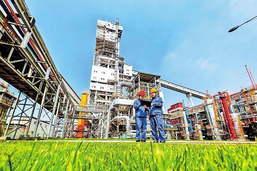 河鋼集團(tuán)張宣科技技術(shù)人員在氫冶金示范工程現(xiàn)場(chǎng)巡查。(資料圖片)
