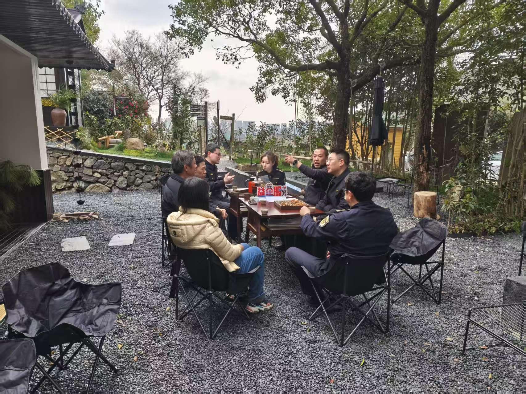 “新店剛開,沒人知道”“想在院子里增加燒烤,但擔(dān)心山林防火問題,心里沒底”“屋頂圍欄會(huì)不會(huì)算違建”“垃圾站離得遠(yuǎn)怎么運(yùn)”……面對店主的“連環(huán)問”,各部門現(xiàn)場辦公、逐一解答:應(yīng)急消防部門現(xiàn)場指導(dǎo)疏散通道暢通、指示標(biāo)志設(shè)置,并承諾組織員工消防培訓(xùn);自然資源規(guī)劃部門當(dāng)場調(diào)取數(shù)據(jù),確認(rèn)未占用生態(tài)紅線,指導(dǎo)其在“五不”的前提下,可適當(dāng)探索林下空間的復(fù)合利用,對確需擴(kuò)大場地新建的應(yīng)按規(guī)定和程序辦理相關(guān)手續(xù),給店主指明了方向;環(huán)衛(wèi)站配置分類垃圾桶,明確每周固定時(shí)間上門收運(yùn);街道發(fā)展服務(wù)辦將店鋪納入街道旅游導(dǎo)覽圖和公眾號(hào)進(jìn)行推廣,并計(jì)劃組織轄區(qū)企業(yè)工會(huì)活動(dòng)到店聯(lián)動(dòng)。