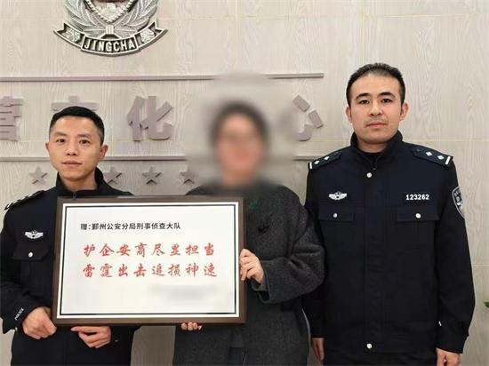 事后,該企業(yè)向警方送來感謝信和寫有“護(hù)企安商盡顯擔(dān)當(dāng),雷霆出擊追損神速”字樣的牌匾,對公安機關(guān)快速破案為企業(yè)挽回?fù)p失表示感謝。