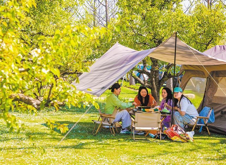 4月4日,市民在湖北省黃石市黃石奧體公園休閑露營,享受春日美好時光。周巍 攝(中經(jīng)視覺)