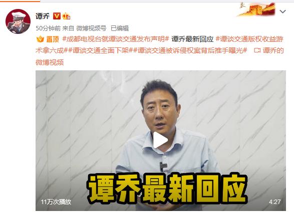 據(jù)上游新聞11日?qǐng)?bào)道,成都廣播電視臺(tái)版權(quán)聲明顯示,成都廣播電視臺(tái)都市生活頻道(CDTV-3)為《譚談交通》所屬的《平安成都》和《紅綠燈》欄目的制作單位,“本單位擁有《平安成都》欄目、《紅綠燈》欄目以及《譚談交通》板塊的全部著作權(quán),若上述欄目出現(xiàn)任何版權(quán)問題,由本單位全權(quán)負(fù)責(zé)”。
