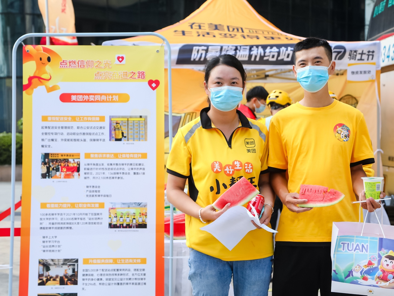 今年7月17日是第五個“717騎士節(jié)”,為向廣大騎手傳遞節(jié)日關(guān)懷、加強(qiáng)騎手勞動安全保障,美團(tuán)配送在全國超過100個城市增設(shè)防暑驛站,為騎手提供休息場所和消暑補(bǔ)給,并向騎手發(fā)放防曬用品和夏季常用藥品等防暑物資。在深圳、杭州、成都等7個城市,美團(tuán)配送的騎手健康體檢車也開上街頭,為騎手提供“隨到隨檢”的便捷服務(wù)。