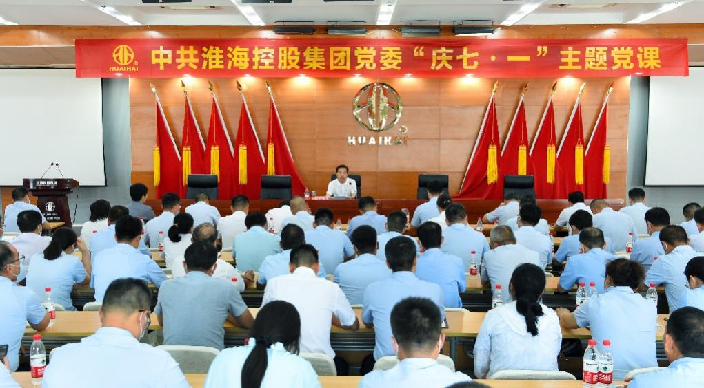 今年7月1日,是中國共產(chǎn)黨成立101周年。在淮海控股集團(tuán)(以下簡稱淮海集團(tuán)),鮮紅的黨旗和“我心永向黨”的海報(bào)隨處可見,醒目的“共產(chǎn)黨員示范崗”紅色卡片放置在每一個(gè)共產(chǎn)黨員的工位上?!包h旗飄在工位上”是集團(tuán)黨建的一大特色,在集團(tuán)生產(chǎn)一線,一塊標(biāo)語牌格外引人注目——“黨建強(qiáng),企業(yè)才更強(qiáng)”。