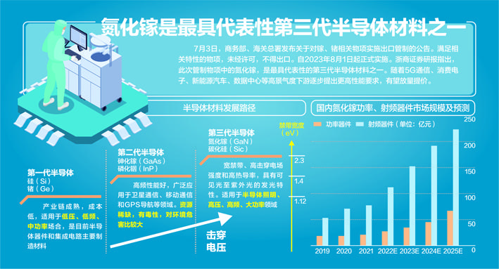 《公告》指出,滿足以下特性的物項(xiàng),未經(jīng)許可,不得出口。鎵相關(guān)物質(zhì),包括金屬鎵(單質(zhì))(參考海關(guān)商品編號(hào):8110929010、8112929090、8112999000)、氮化鎵(包括但不限于晶片、粉末、碎料等形態(tài))(參考海關(guān)商 品 編 號(hào) :2850001901、3818009001、3825690001)等。