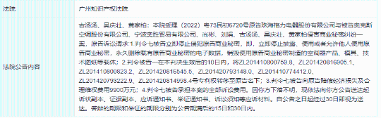 格力電器訴求判令被告將ZL201410800759.8、ZL201420816905.1、ZL201410800823.2、ZL201420816545.5、ZL201420793148.0、ZL201410774412.0、ZL201420793222.9、ZL201420814998.4號(hào)專利權(quán)轉(zhuǎn)移至原告名下;并且賠償原告9900萬(wàn)元。