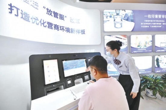 “僅半天就把開業(yè)需要的所有證照一次性辦好了?!备吲奎c(diǎn)贊的“證照聯(lián)辦”和“一業(yè)一證”疊加合并改革,實(shí)現(xiàn)了“一次告知、一表申請、一套材料、一窗受理、一網(wǎng)辦理、一次辦結(jié)、證照同發(fā)”,最大程度上減環(huán)節(jié)、減材料、減時(shí)限。