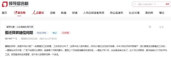除了被撤銷高新技術(shù)企業(yè)資格之外,2023年11月27日,齊河永鋒鋼廠一名員工家屬在人民網(wǎng)“領導留言板”留言稱,永鋒鋼廠搬遷去臨沂臨港,今年3月份齊河本部停產(chǎn),“我們都是沒法跟著去工作的,一直留在齊河本部,廠里不給簽協(xié)議離職,就是每個月降低薪水,直到上個月按縣城最低標準發(fā)放,一直拖了8個月”,賠償卻要求按前12個月平均工資計算。