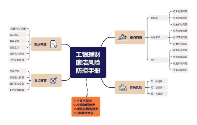 工銀理財面臨機構(gòu)新、業(yè)務(wù)新和人員新的三“新”風(fēng)險,既具有傳統(tǒng)金融機構(gòu)的普遍性廉潔風(fēng)險點,也面臨部分獨特風(fēng)險點。