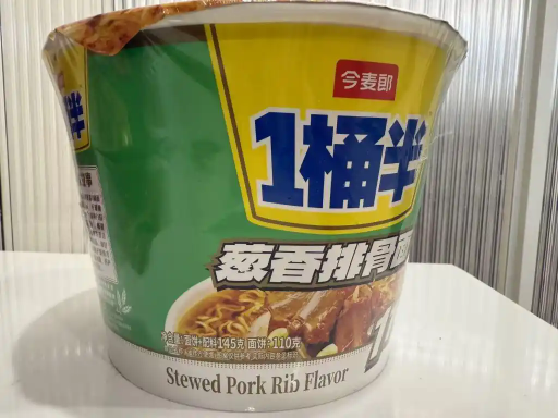 記者注意到,熱銷的今麥郎“1 桶半”桶裝方便面面餅標注的克數為110g,其包裝上“1桶半”右側標注“TM”,產品外包裝上的宣傳語為:“不是兩桶買不起,而是1桶半更有性價比:與今麥郎彈面小桶產品對比”。但今麥郎“彈面小桶產品”面餅為85克,按照“1.5 倍小桶重量”的字面意思計算,其一桶半的克數應為127.5 克,也就是從重量上來說,今麥郎的“1 桶半”并未達到宣稱的份量。