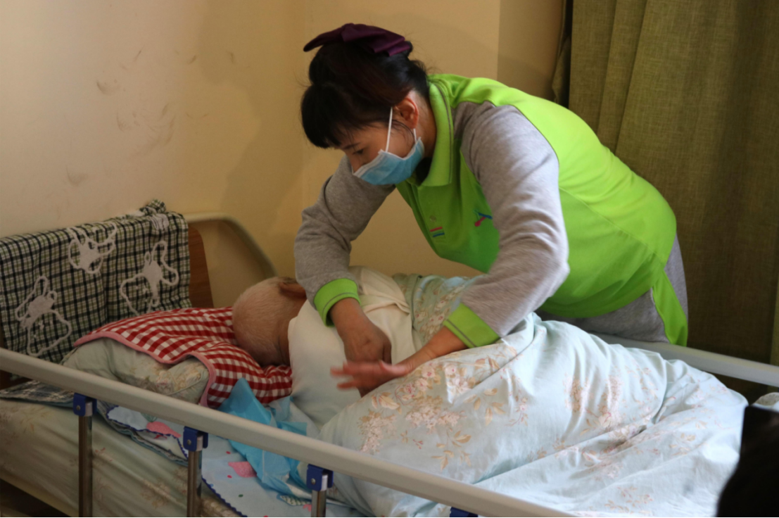 圖:專業(yè)人員照護(hù)失能老人