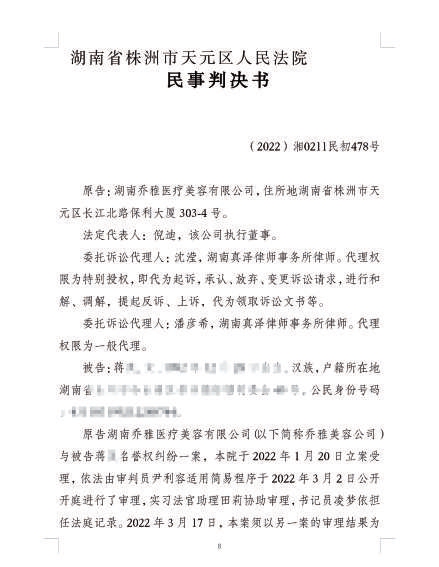 據(jù)此,法院依法作出判決,駁回美容機(jī)構(gòu)全部訴訟請求。對此,美容機(jī)構(gòu)沒有提出上訴,該判決現(xiàn)已生效。
