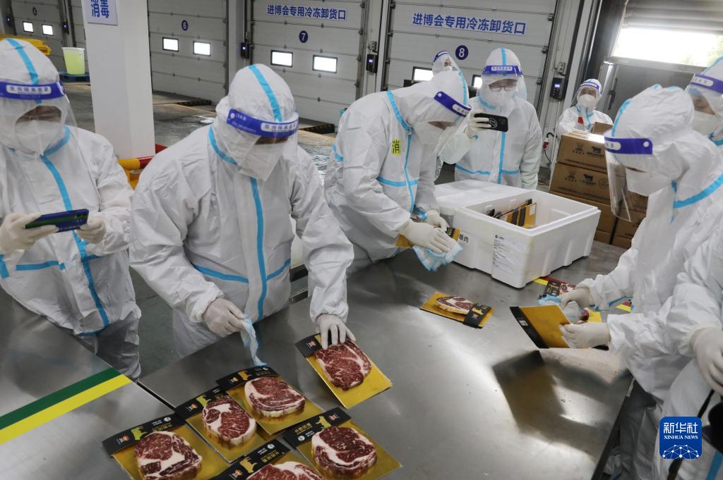 記者在現(xiàn)場(chǎng)看到,當(dāng)運(yùn)輸進(jìn)口冷鏈?zhǔn)称氛蛊返能?chē)輛到達(dá)后,工作人員馬上對(duì)司機(jī)進(jìn)行健康碼核驗(yàn)和體溫檢測(cè),并對(duì)車(chē)輛進(jìn)行消毒。裝卸過(guò)程中,司機(jī)實(shí)行“非必要不下車(chē)”。貨物入庫(kù)時(shí),在完成外包裝消毒后,工作人員將展品拆除外包裝,對(duì)內(nèi)里的小包裝進(jìn)行消毒、核酸檢測(cè),再重新裝箱、貼標(biāo)簽、放入暫存庫(kù),之后再轉(zhuǎn)入合格儲(chǔ)存庫(kù)。