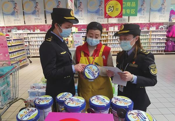 今年2月,嬰幼兒奶粉“新國標(biāo)”——3項(xiàng)強(qiáng)制性國家標(biāo)準(zhǔn)正式實(shí)施。連日來,浙江省湖州市長興縣市場監(jiān)管局對轄區(qū)內(nèi)大型商超、母嬰用品店進(jìn)行全面檢查,督促各單位落實(shí)明碼標(biāo)價,把好食品安全主體責(zé)任關(guān)。圖為該局執(zhí)法人員正在對轄區(qū)內(nèi)一家商超進(jìn)行檢查。