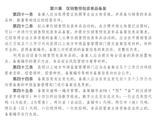 同時(shí),各經(jīng)營主體也要格外注意,《辦法》中不僅對包括特殊食品在內(nèi)的預(yù)包裝食品規(guī)定了進(jìn)行備案管理的條款,也明確了設(shè)定僅銷售預(yù)包裝食品違法行為法律責(zé)任。
