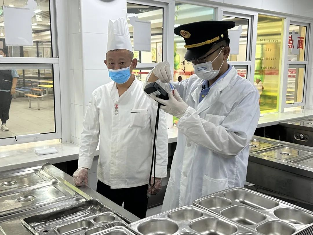 據(jù)介紹,今年上海市還全新出臺(tái)了食品從業(yè)人員抽查考核管理辦法。新學(xué)期開學(xué)前,新黃浦實(shí)驗(yàn)學(xué)校食品管理人員已全部通過抽考。現(xiàn)場,執(zhí)法人員通過市場監(jiān)管移動(dòng)端對(duì)考核信息作了查閱。隨后,執(zhí)法人員進(jìn)入后廚,查看了學(xué)校食堂原材料的進(jìn)貨臺(tái)賬,著重檢查了廚房的環(huán)境衛(wèi)生、餐具表面清潔度、食材留樣管理以及食品溯源登記等情況。本次區(qū)市場監(jiān)管局還特別邀請了第三方檢測機(jī)構(gòu),對(duì)于學(xué)校食堂原材料、加工環(huán)節(jié)等采樣檢測,檢測結(jié)果預(yù)計(jì)將在一周內(nèi)得到,屆時(shí)區(qū)市場監(jiān)管局也將結(jié)合結(jié)果做好指導(dǎo)培訓(xùn)。