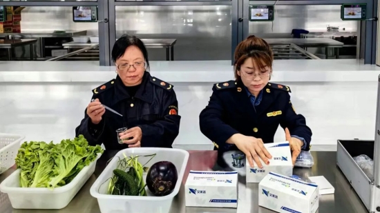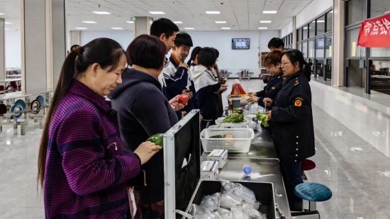 活動(dòng)現(xiàn)場,工作人員正在對蔬菜進(jìn)行檢測。張曉杰攝