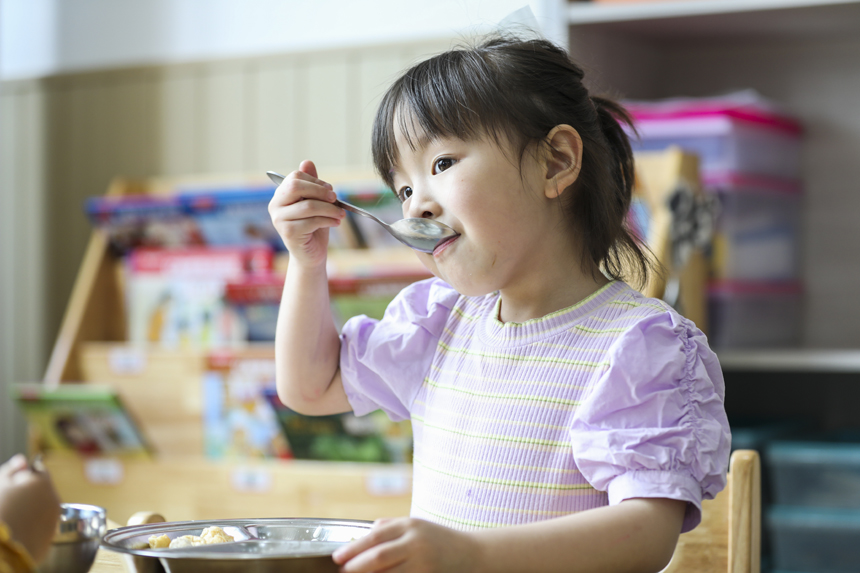 5月22日,江西省撫州市南豐縣市山鎮(zhèn)第一幼兒園的小朋友在吃午餐。近年來,南豐縣推行農(nóng)村學(xué)前教育兒童營養(yǎng)改善計(jì)劃,參照“均衡營養(yǎng),科學(xué)膳食”的標(biāo)準(zhǔn),結(jié)合學(xué)前幼兒飲食習(xí)慣,制定每周菜譜,嚴(yán)控食品安全關(guān),確保營養(yǎng)膳食搭配,讓學(xué)前幼兒吃得飽、吃得好、吃得健康。(謝東)