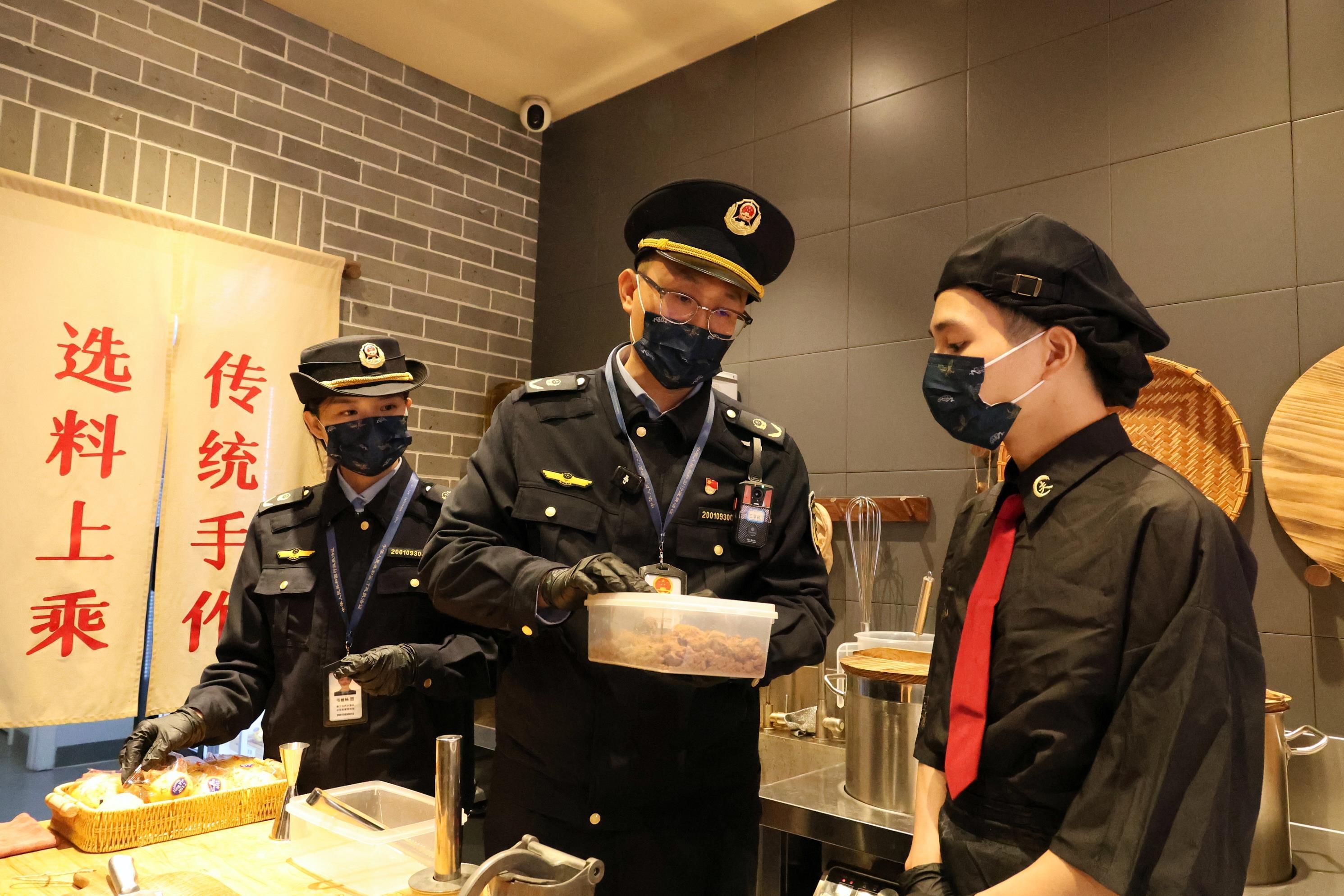 12月15日,廣西壯族自治區(qū)南寧市西鄉(xiāng)塘區(qū)市場監(jiān)管局執(zhí)法人員對現(xiàn)制現(xiàn)賣飲品連鎖店開展食品安全專項檢查。執(zhí)法人員重點核查經(jīng)營者主體資質(zhì)、食材采購儲存、操作臺環(huán)境衛(wèi)生及餐廚垃圾處置等環(huán)節(jié)。(顧艷偉 何正君)