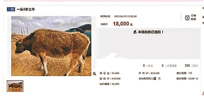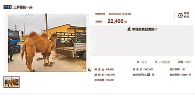 今年4月19日12時,新疆維吾爾自治區(qū)木壘哈薩克自治縣人民法院在阿里拍賣平臺上對一頭3歲的駱駝和一頭5歲的土牛進行拍賣。駱駝的起拍價格為22400元,土牛的起拍價格為18000元。截至2021年4月20日12時,兩只活物標(biāo)的物最終流拍。