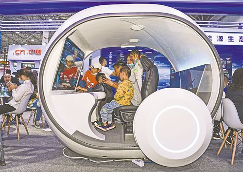 5月27日,孩子們?cè)凇皵?shù)博會(huì)”上通過(guò)虛擬電動(dòng)車體驗(yàn)綠色出行。
