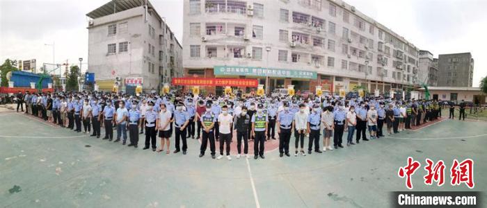 當(dāng)天,南寧市公安機(jī)關(guān)近3500名警力分頭趕赴24個(gè)抓捕點(diǎn)集中開(kāi)展抓捕行動(dòng)。與此同時(shí),南寧市各級(jí)政法機(jī)關(guān)、市場(chǎng)監(jiān)管、金融監(jiān)管、通訊管理等部門(mén)2000多人也聯(lián)動(dòng)出擊,開(kāi)展聯(lián)合整治。