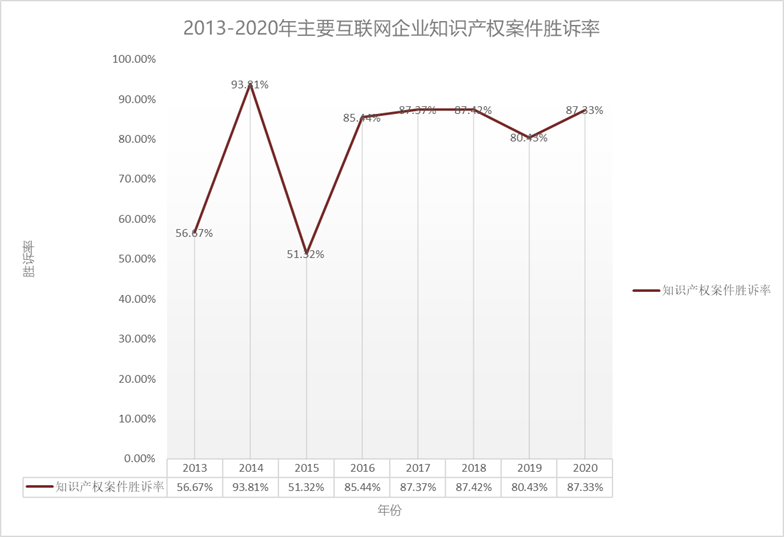 (二)互聯(lián)網(wǎng)企業(yè)知識(shí)產(chǎn)權(quán)案件勝訴率概覽