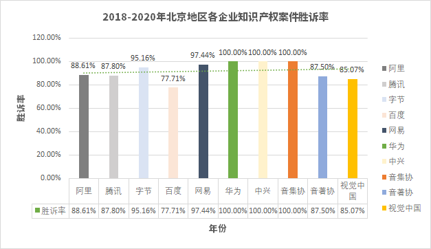 1、互聯(lián)網(wǎng)企業(yè)在北京地區(qū)知識(shí)產(chǎn)權(quán)案件勝訴率情況