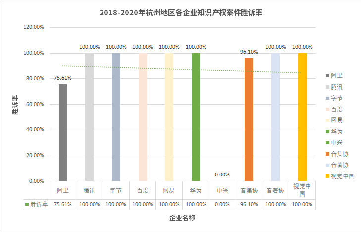 2、互聯(lián)網(wǎng)企業(yè)在杭州地區(qū)知識(shí)產(chǎn)權(quán)案件勝訴率情況