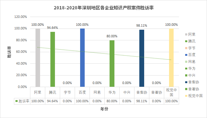 3、互聯(lián)網(wǎng)企業(yè)在深圳地區(qū)知識(shí)產(chǎn)權(quán)案件勝訴率情況