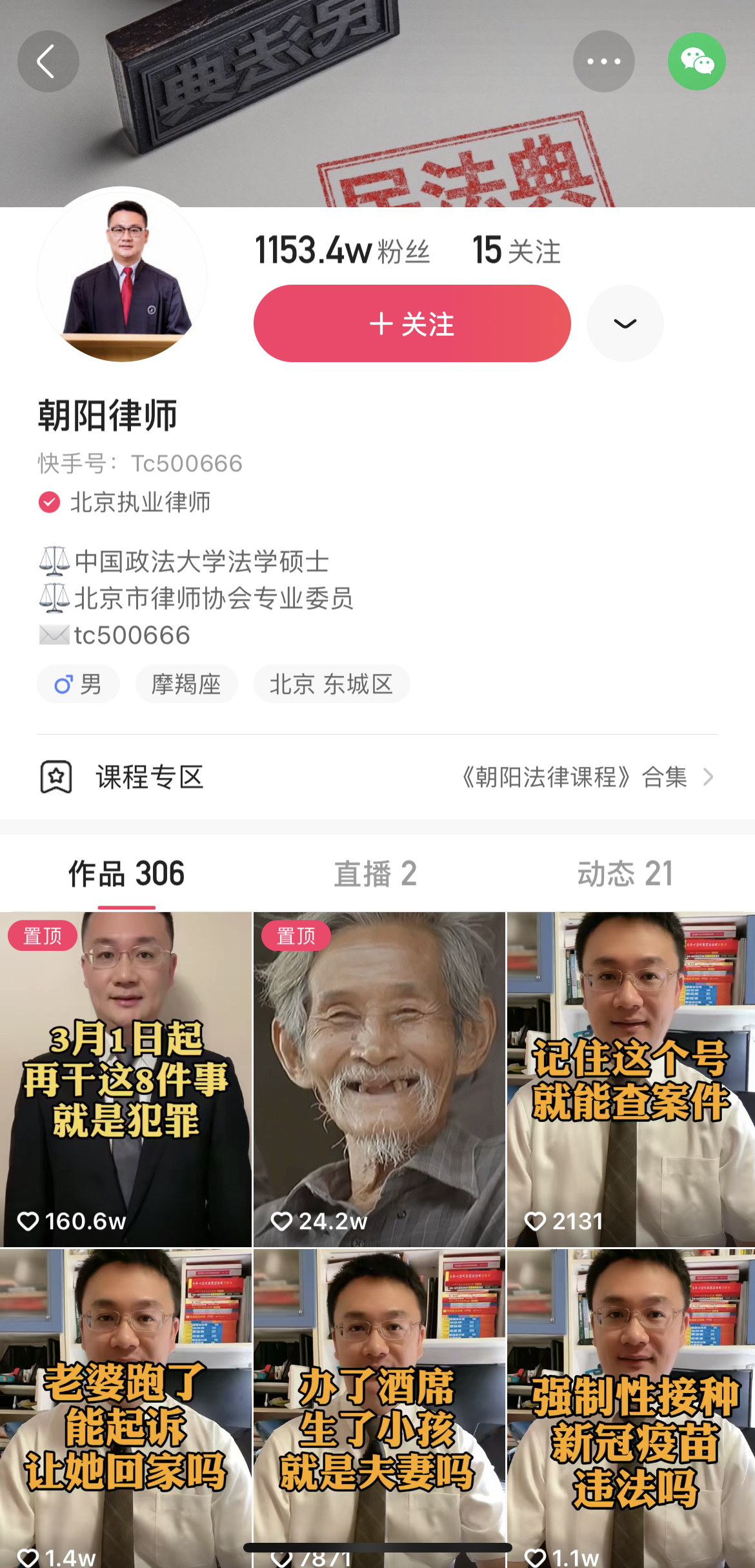 2016年,短視頻剛剛興起,楊朝陽(yáng)也是在這時(shí)無(wú)意接觸到了快手。在覺(jué)得“好玩”的同時(shí),律師的職業(yè)敏感性讓他捕捉到一個(gè)信息:當(dāng)時(shí)平臺(tái)上娛樂(lè)性內(nèi)容較多,法律板塊則是一片空白?!斑@么好的一個(gè)平臺(tái),為什么不通過(guò)它給大家普法,給大家答疑解惑呢?這樣的話應(yīng)該能夠幫助更多的人?!庇谑牵麌L試著錄了第一個(gè)視頻。