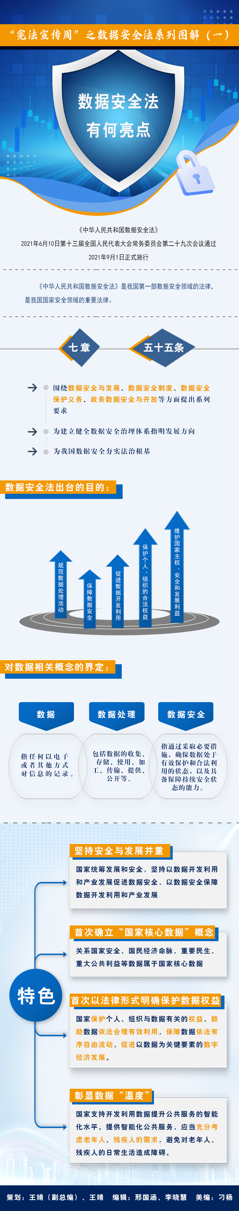 值此第四個(gè)“憲法宣傳周”之際,法制網(wǎng)將為您解讀今年9月1日起施行的《中華人民共和國(guó)數(shù)據(jù)安全法》——這部法律的亮點(diǎn)是什么?它是如何支持促進(jìn)數(shù)據(jù)安全與發(fā)展的?它又彰顯了哪些數(shù)據(jù)“溫度”?這一系列問題,都會(huì)在法制網(wǎng)《數(shù)據(jù)安全法圖解(系列)》中找到答案。