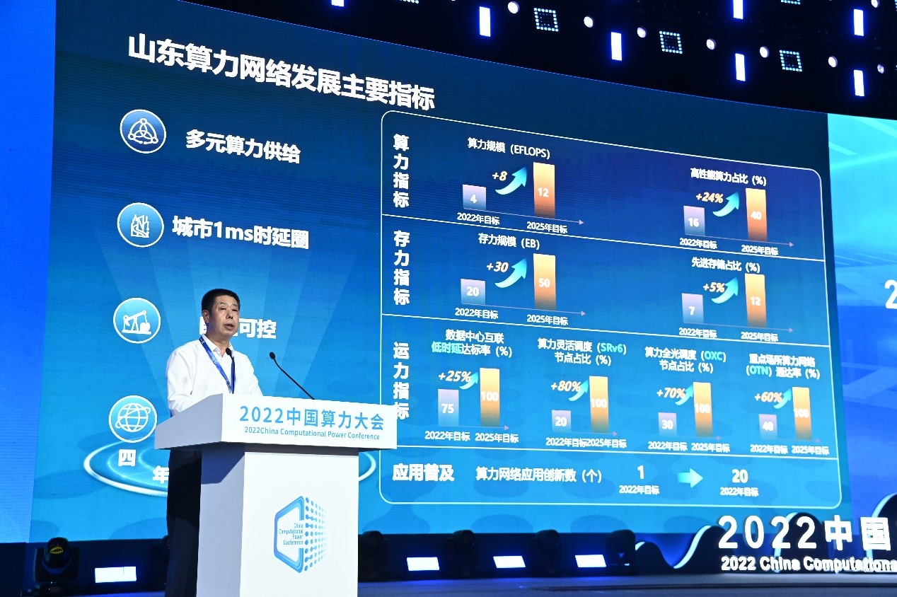 據(jù)山東省通信管理局張洪溢局長(zhǎng)介紹,《山東一體化算力網(wǎng)絡(luò)建設(shè)行動(dòng)方案(2022-2025年)》明確了4項(xiàng)具體目標(biāo):算力供給均衡合理、存力保障安全可靠、運(yùn)力網(wǎng)絡(luò)優(yōu)質(zhì)互聯(lián)、算力網(wǎng)絡(luò)應(yīng)用創(chuàng)新。一是穩(wěn)步提升全省算力規(guī)模,2025年全省數(shù)據(jù)中心總算力超過12EFLOPS,高性能算力占比達(dá)到40%,國產(chǎn)化算力達(dá)到90%;二是系統(tǒng)構(gòu)建存力基礎(chǔ)設(shè)施,2025年存力規(guī)模達(dá)到50EB,先進(jìn)存儲(chǔ)占比12%;三是持續(xù)夯實(shí)運(yùn)力聯(lián)接底座,到2025年,全面構(gòu)建省會(huì)經(jīng)濟(jì)圈、膠東經(jīng)濟(jì)圈、魯南經(jīng)濟(jì)圈3毫秒時(shí)延圈,16地市1毫秒時(shí)延圈,全省數(shù)據(jù)中心、核心傳輸站點(diǎn)實(shí)現(xiàn)SRv6核心路由器、全光交換(OXC)傳輸設(shè)備全覆蓋,商務(wù)樓宇和產(chǎn)業(yè)園區(qū)實(shí)現(xiàn)OTN光接入終端全覆蓋;四是深化推動(dòng)算力網(wǎng)絡(luò)應(yīng)用創(chuàng)新,結(jié)合省內(nèi)產(chǎn)業(yè)特點(diǎn),到2025年打造20個(gè)可規(guī)模復(fù)制的算力網(wǎng)絡(luò)標(biāo)桿應(yīng)用。