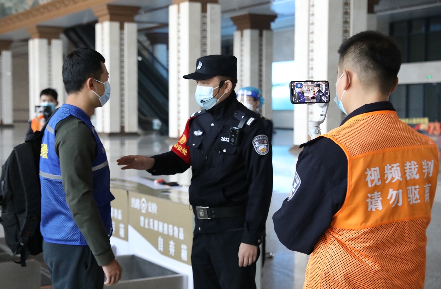 10月14日,西安鐵路公安處以最小作戰(zhàn)單元現(xiàn)場處置專項(xiàng)訓(xùn)練為切入點(diǎn),進(jìn)行網(wǎng)絡(luò)直播執(zhí)法糾錯(cuò)演練,旨在通過新媒體方式加強(qiáng)隊(duì)伍執(zhí)法監(jiān)督,倒逼民警執(zhí)法規(guī)范化。圖為視頻裁判正在對演練雙方進(jìn)行直播。