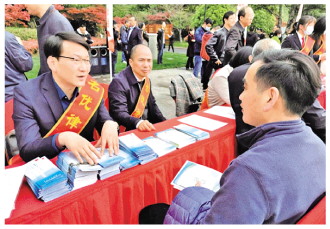 邢輝(左一)現(xiàn)場(chǎng)為群眾答疑解惑。