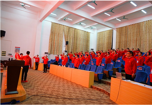 圖為2020年廣西律師行業(yè)青年黨員優(yōu)秀人才培訓班在欽州市北部灣大學成功舉辦,全體青年黨員律師重溫入黨誓詞。
