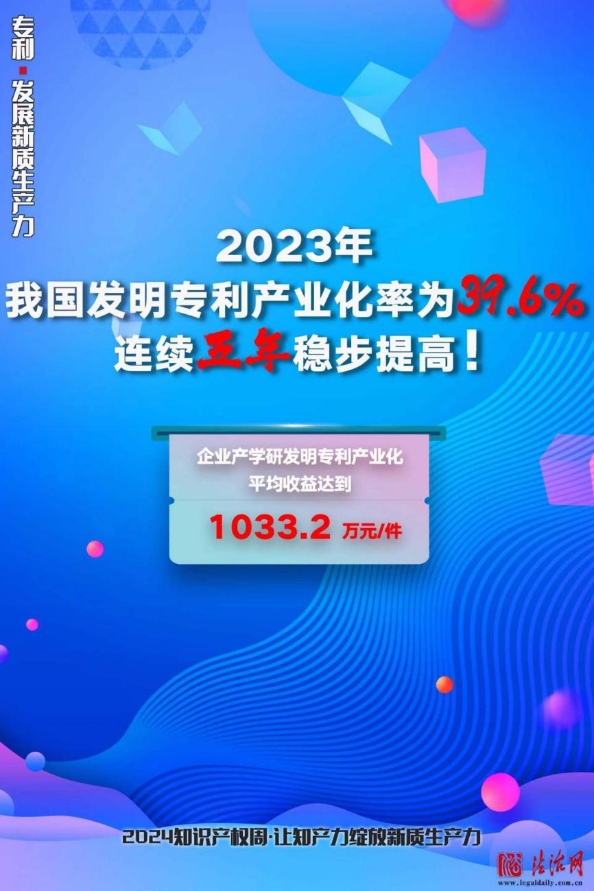 近日,國家知識產(chǎn)權(quán)局發(fā)布《2023年中國專利調(diào)查報告》(以下簡稱《報告》)。《報告》顯示,2023年,我國發(fā)明專利產(chǎn)業(yè)化率為39.6%,較上年提高2.9個百分點,連續(xù)五年穩(wěn)步提高。作為創(chuàng)新的主體,我國企業(yè)發(fā)明專利產(chǎn)業(yè)化率為51.3%,較上年提高3.2個百分點。從企業(yè)規(guī)???,大型、中型、小型和微型企業(yè)發(fā)明專利產(chǎn)業(yè)化率分別為51.0%、57.9%、53.9%和33.8%,均較上年有所提升。