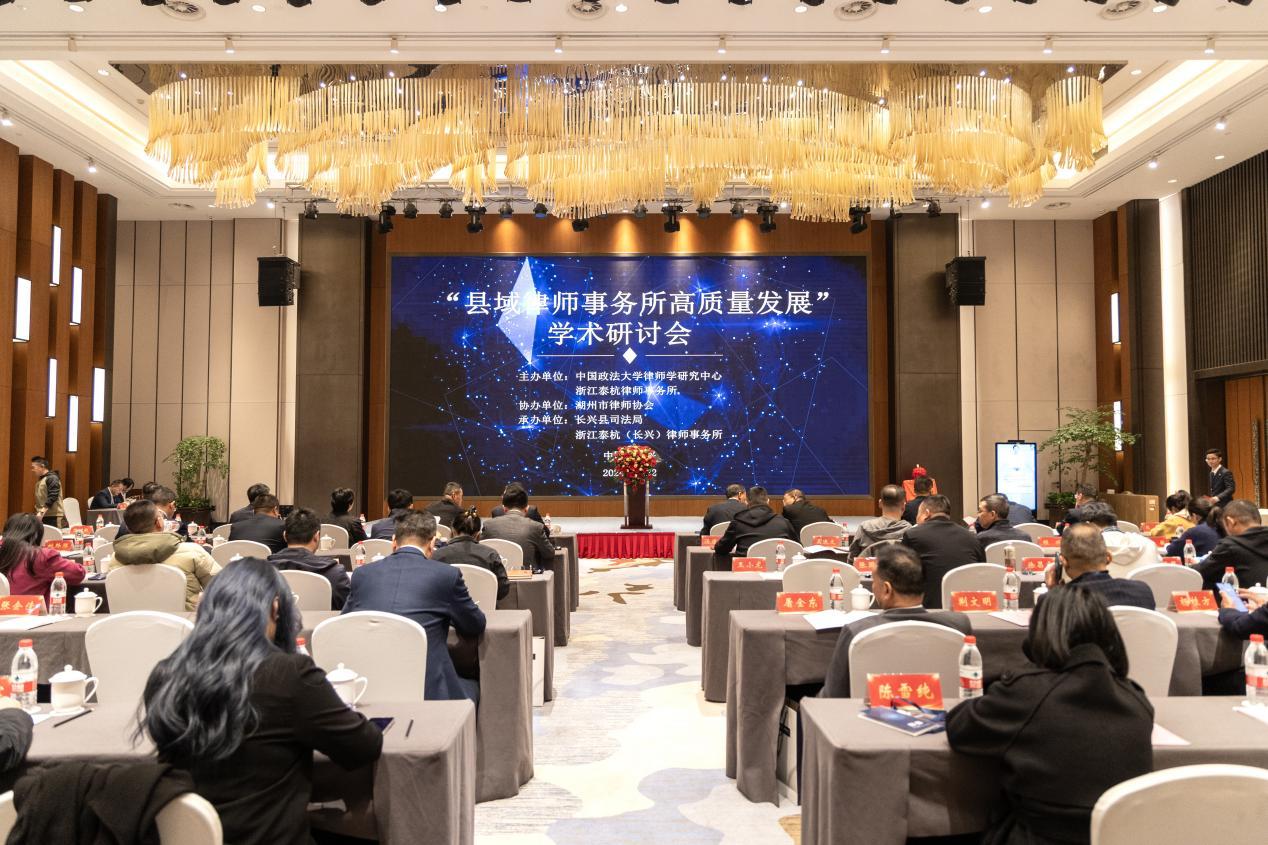 11月22日,由中國政法大學(xué)律師學(xué)研究中心和浙江泰杭律師事務(wù)所主辦,湖州市律師協(xié)會(huì)協(xié)辦,長興縣司法局和浙江泰杭(長興)律師事務(wù)所承辦“縣域律師事務(wù)所高質(zhì)量發(fā)展”學(xué)術(shù)研討會(huì)在浙江長興順利召開。中國政法大學(xué)教授、博導(dǎo)、律師學(xué)研究中心主任王進(jìn)喜、副教授白冰、王迎龍,浙江省司法廳律工處處長徐耀雪、一級(jí)主任科員陳芬,浙江省律協(xié)副會(huì)長陸金才、副監(jiān)事長周吳紅,湖州市司法局黨委委員、副局長易明安,湖州市律師協(xié)會(huì)會(huì)長湯鑒學(xué),湖州市司法局律工處處長沈海建等參加研討會(huì)。