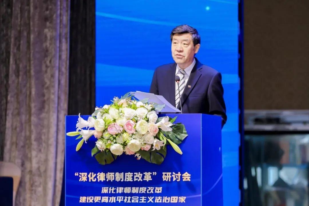 十三屆全國人大常委會副秘書長、監(jiān)察和司法委員會副主任委員、中國法學會律師法學研究會會長韓曉武在致辭中表示,此次研討會以“深化律師制度改革,建設更高水平的社會主義法治國家”為核心思想,旨在于進一步直面我國律師行業(yè)發(fā)展中的問題,共同探討律師制度改革的新方向。韓曉武強調(diào),深化律師制度改革,要堅持政治引領和強有力的理論支撐,服務大局,關(guān)注律師行業(yè)管理體制現(xiàn)代化;廣大律師在發(fā)展新質(zhì)生產(chǎn)力中承擔重要責任,需積極發(fā)展涉外法律服務,助力我國涉外法治建設。
