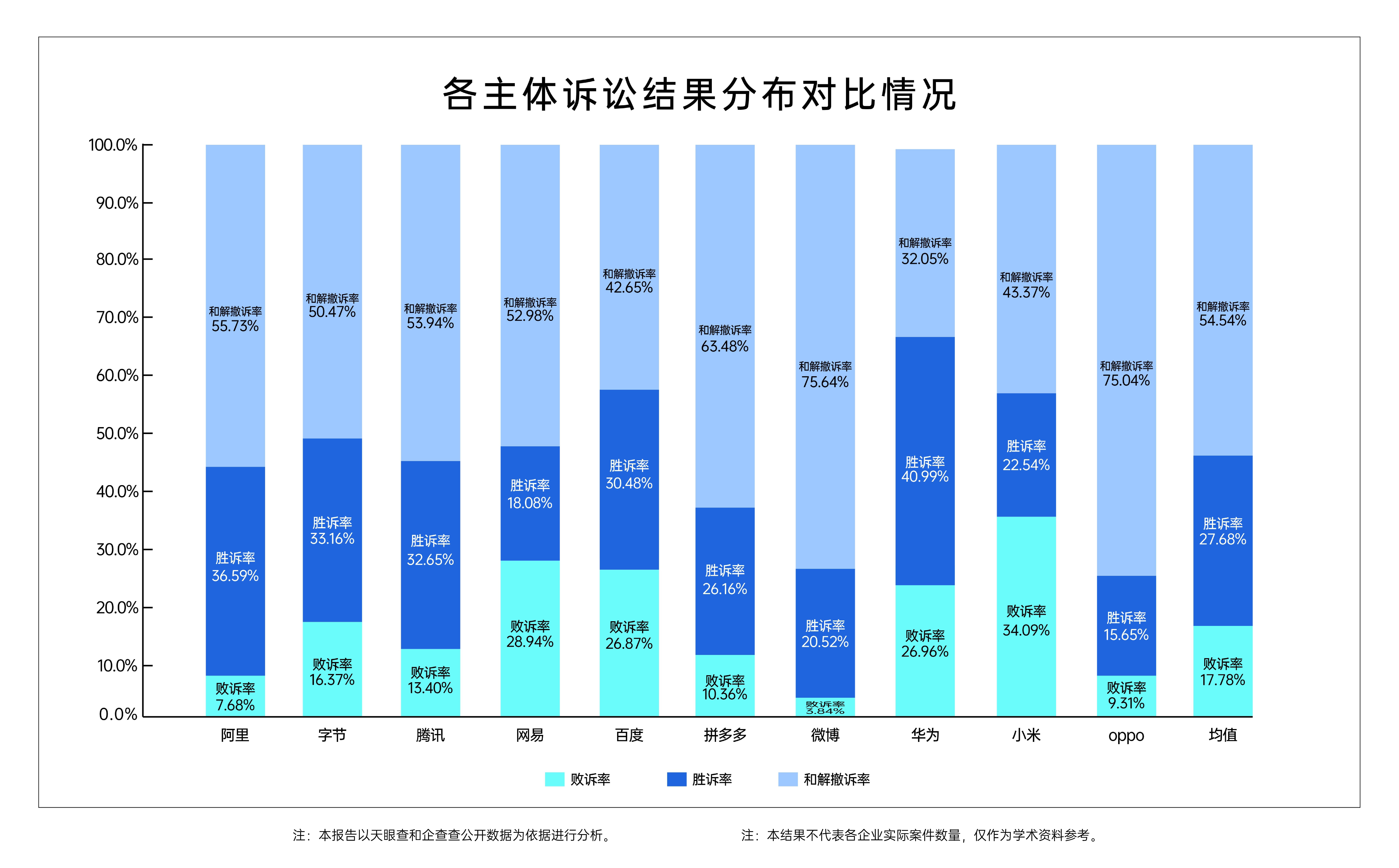 (根據(jù)企查查專(zhuān)業(yè)版數(shù)據(jù)統(tǒng)計(jì),各主體訴訟結(jié)果分布對(duì)比情況)