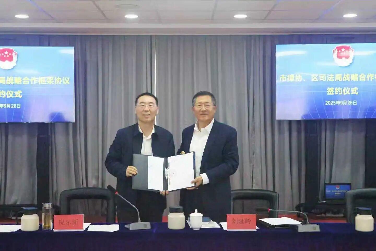 近日,北京市律師協(xié)會(huì)與北京市朝陽區(qū)司法局正式簽署合作框架協(xié)議,啟動(dòng)志愿律師參與行政復(fù)議調(diào)解試點(diǎn)工作。北京市律師協(xié)會(huì)會(huì)長劉延嶺、副會(huì)長呂立秋、行政復(fù)議法專業(yè)委員會(huì)主任任佳慧、副主任李萌及志愿律師代表參加簽約儀式。