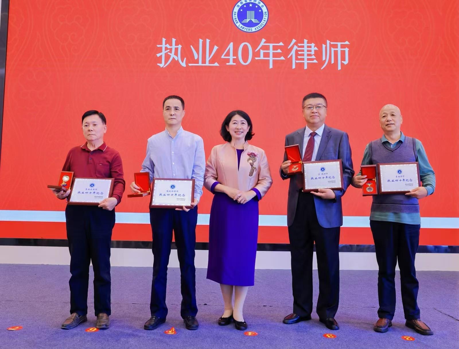 “你們的奮斗史,就是一部海南律師行業(yè)從初創(chuàng)到壯大的發(fā)展史。你們?cè)诜ㄍド系目犊愒~,在案卷前的孜孜不倦,在風(fēng)雨中的執(zhí)著堅(jiān)守,不僅為當(dāng)事人捍衛(wèi)了權(quán)益,更為我們?nèi)w律師樹(shù)立了精神的標(biāo)桿與業(yè)務(wù)的楷模?!狈偡冶硎?。
