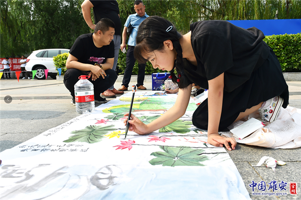 6月12日上午,“百米長卷繪雄安”主題繪畫活動在安新縣白洋淀文化廣場舉辦。本次活動是安新縣第十六屆全縣中小學生藝術(shù)節(jié)活動的一部分,安新縣各中小學及幼兒園的230余名學生代表參加了繪畫活動,活動展出的繪畫作品包含幼兒、小學、初中、高中四個長卷,總長度達210米。學生們在上面畫出了自己心中最美的雄安,場面十分壯觀,得到了社會各界的廣泛關(guān)注和參與。