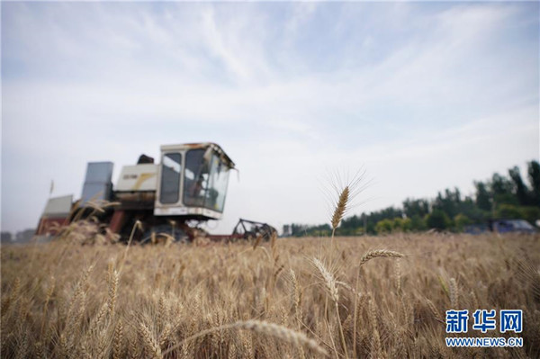 6月13日,雄安新區(qū)大王鎮(zhèn)小王村村民在收獲小麥。 近日,雄安新區(qū)小麥陸續(xù)成熟,當?shù)卮迕駬屪マr(nóng)時進行收獲。 新華社記者 邢廣利 攝