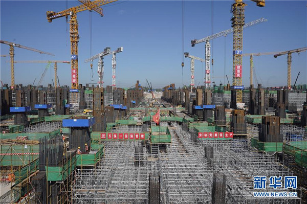 京雄城際鐵路雄安站總建筑面積47萬平方米,地上3層,地下2層,其中地下主體結(jié)構(gòu)將于近期完成,即將轉(zhuǎn)入地上主體結(jié)構(gòu)施工。 新華社記者 邢廣利 攝