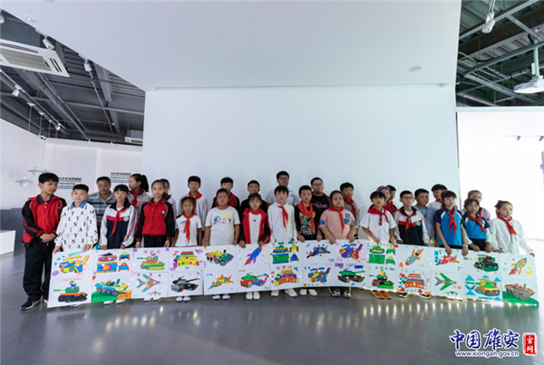 孩子們與自己設(shè)計的作品合影留念。中國雄安官網(wǎng)發(fā)