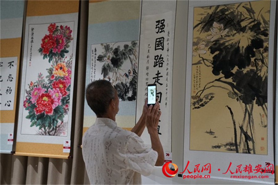 本次書畫展共展出容城及周邊10多個(gè)縣市區(qū)書畫作品140幅。書畫家、書法愛好者以飽滿的創(chuàng)作熱情,把對(duì)祖國(guó)母親的熱愛、對(duì)新區(qū)美好未來的向往化作美麗的線條和畫面。(蘇丹丹)