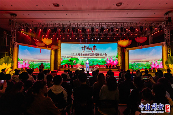 活動(dòng)現(xiàn)場(chǎng),歡快的開場(chǎng)歌舞《闊步新時(shí)代》拉開了“詩話雄安”2019河北雄安新區(qū)詩詞誦讀大會(huì)的序幕。在上篇“雄安詩緣”中,表演藝術(shù)家王慧源、耿麗萍、郭凱敏帶來的《詩經(jīng)·蒹葭》《在水一方》《趙北口清懷樓作》精彩節(jié)目,將雄安新區(qū)的悠久歷史文化進(jìn)行完美演繹。隨后,朗誦藝術(shù)家殷之光、吉雅瑞德帶來的朗誦《我只想依偎這片土地》《滿江紅?雄安雄風(fēng)》以及雄安非遺演出為觀眾呈現(xiàn)一場(chǎng)別開生面的藝術(shù)表演,將中篇“雄安榮光”氣氛推向高潮。朗誦藝術(shù)家虹云激情演繹的詩歌《我要歌唱一棵老槐》以及雄安新區(qū)學(xué)生代表等表演的情景詩劇《我和2035有個(gè)約》節(jié)目,緊扣下篇“雄安明天會(huì)更好”主題,從美妙演繹中傳遞家國情懷,謳歌新區(qū)建設(shè)者的奮斗精神,讓雄安人民對(duì)未來美好生活充滿了向往。